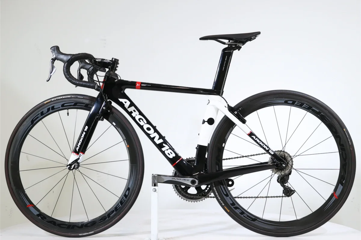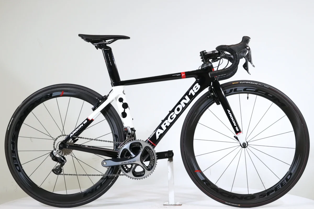 L’Argon 18 Nitrogen Pro de 2018 est un vélo de route d’exception, conçu pour les cyclistes recherchant vitesse, précision et performance de haut niveau. Avec son cadre en carbone ultra-léger (7kg) et aérodynamique, associé aux roues en carbone Fulcrum Racing Speed, il garantit un rendement optimal et une maniabilité irréprochable. La transmission électronique Shimano Dura-Ace Di2 à 11 vitesses offre une fluidité et une réactivité incomparables pour chaque changement de vitesse. Doté de freins intégrés et d’un poste de pilotage en carbone Ritchey WCS, il assure un contrôle précis et un confort maximal, même sur les parcours les plus exigeants. Parfait pour repousser vos limites en compétition ou à l’entraînement.