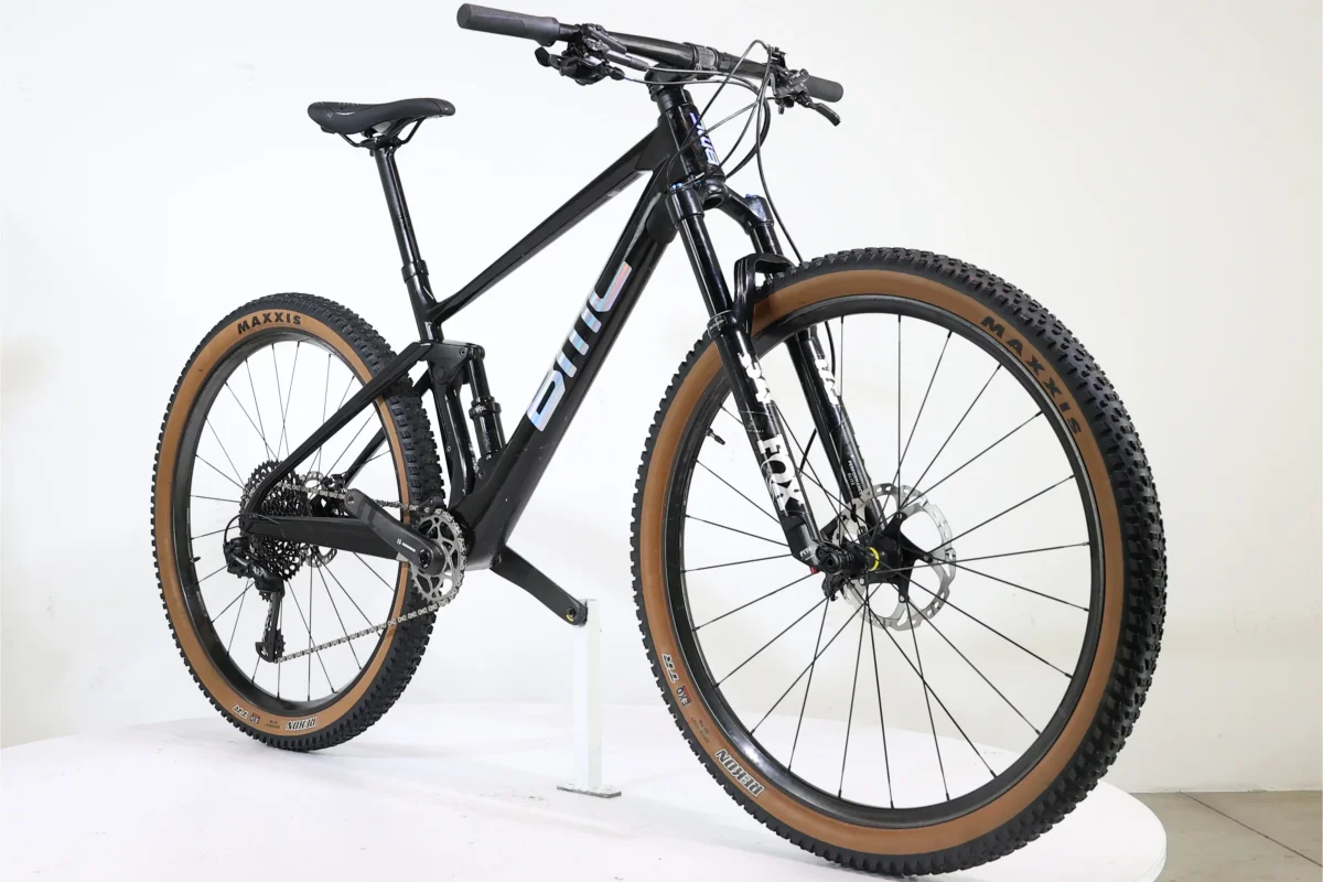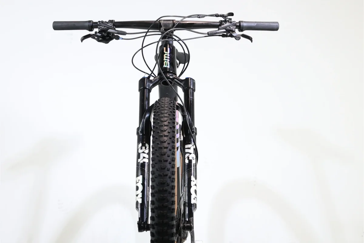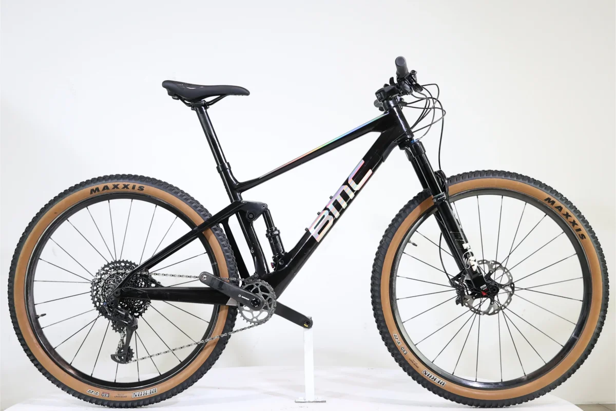 Le BMC Fourstroke 2021 est un VTT tout suspendu avec un cadre en carbone premium et un système de suspension APS offrant 120 mm de dĂ©battement. Il est Ă©quipĂ© d’une fourche Fox Float 34 SC Performance Elite et d’un amortisseur Fox Float DPS, tous deux contrĂ´lĂ©s Ă  distance. La transmission est assurĂ©e par un groupe SRAM Eagle avec un dĂ©railleur arrière XX1 Eagle et des freins Shimano deore XT. Avec des roues carbone de 29 pouces et des pneus Maxxis Rekon 2.4″, il est conçu pour le trail. Ce modèle lĂ©ger pèse environ 11,1 kg.