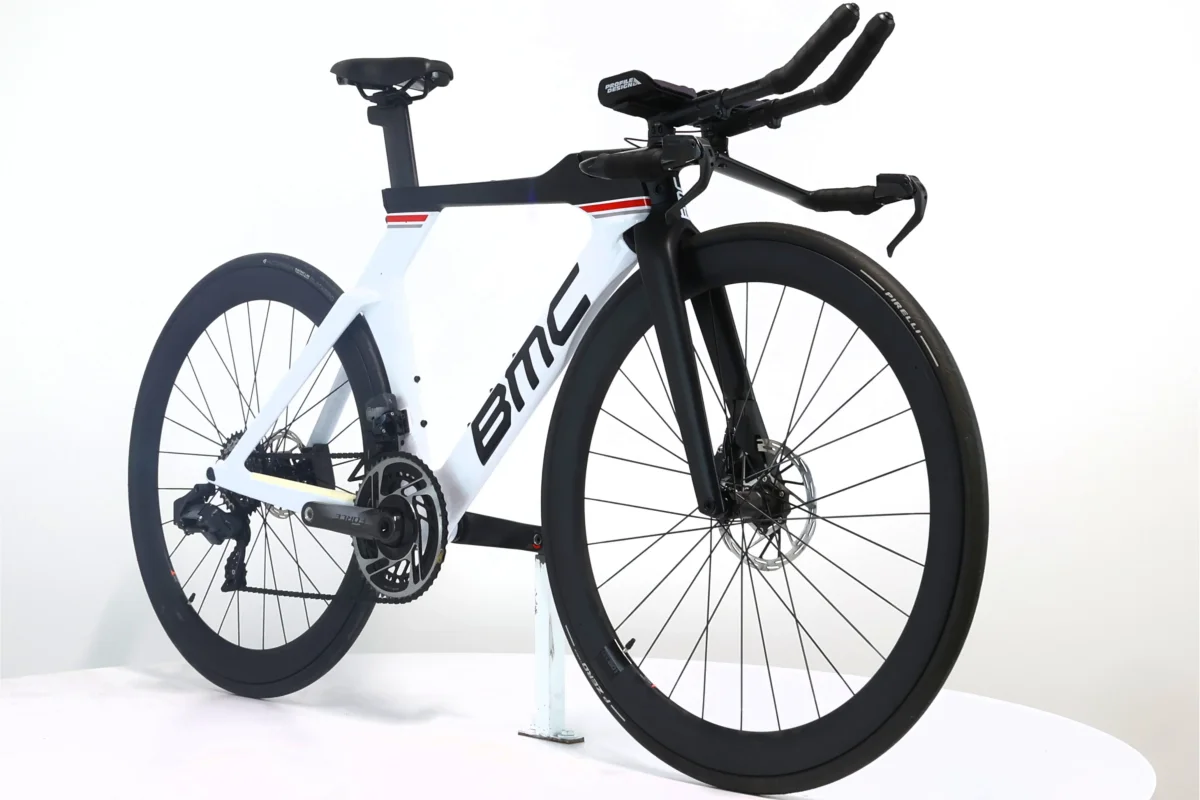 Le BMC Timemachine 01 Disc Two de 2023 est un vélo de contre-la-montre haut de gamme conçu pour les compétitions de triathlon et de chrono. Il est équipé d’un cadre en carbone aérodynamique, du groupe électronique SRAM Force eTap AXS à 12 vitesses pour des changements rapides et précis, ainsi que de freins à disque pour un contrôle optimal. Ses roues DT Swiss en carbone et son aérodynamisme offrent une excellente performance sur le plat. Avec son design léger et ses technologies avancées, c’est un vélo parfait pour maximiser la vitesse et l’efficacité en compétition.