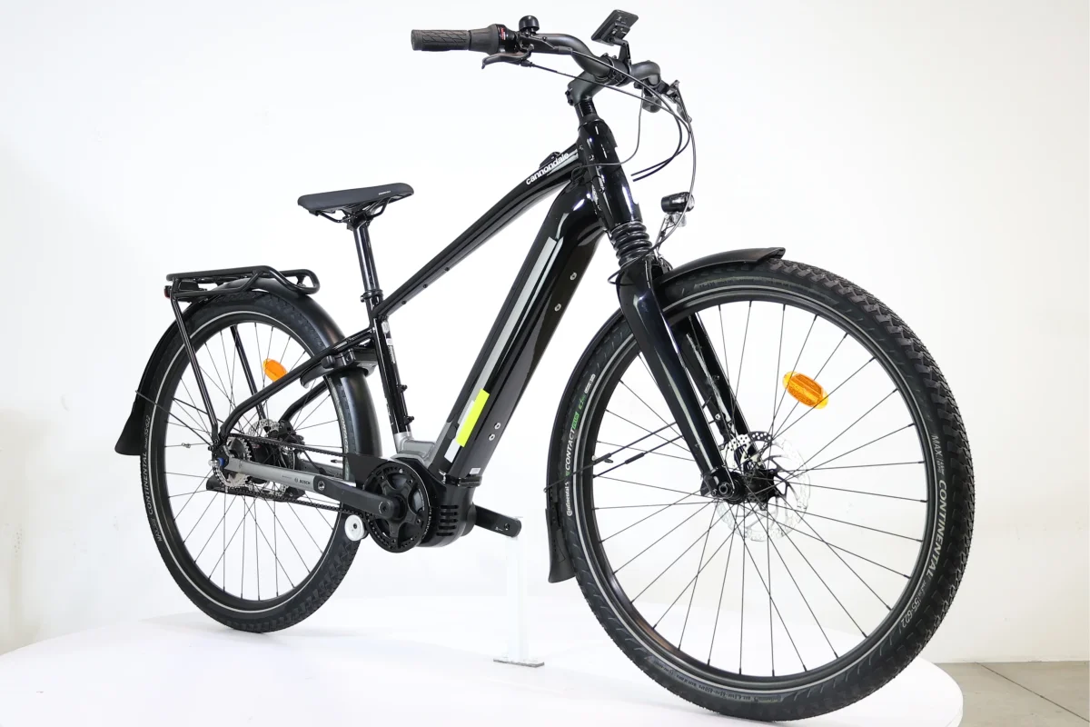 Ce CANNONDALE Mavaro Neo 3 est un vélo urbain/vtc à assistance électrique ! Niveau motorisation, il est équipé par Bosch, dont la renommée n’est plus à faire, avec un moteur Performance Line Plus ainsi qu’une batterie de 625 Wh, de quoi faciliter vos trajets du quotidien ou les prolonger jusqu’à 180km ! Il s’agit d’un vélo orienté confort, notamment grâce à sa fourche suspendue et ses nombreux équipements : lumières, porte bagages,…