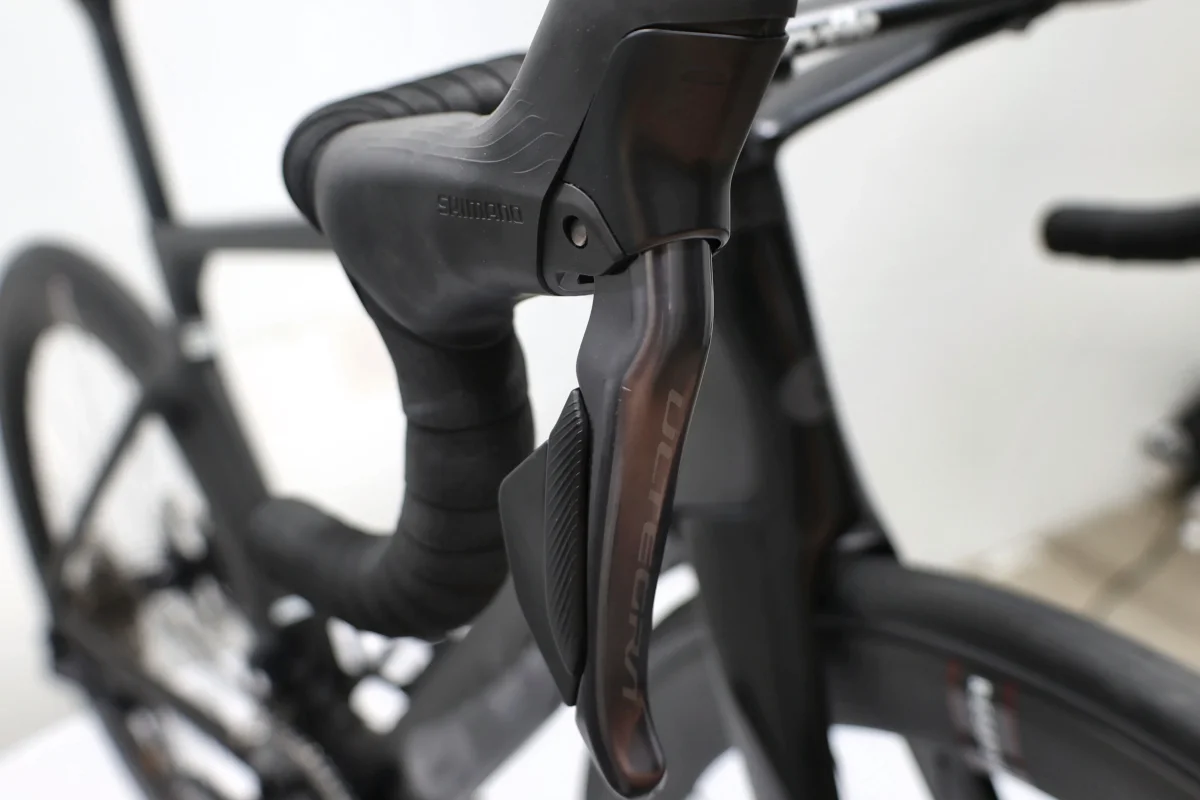 Le vélo de route aérodynamique haut de gamme, conçu pour maximiser la vitesse et l’efficacité grâce à un cadre en carbone allégé et des tubes profilés optimisés pour réduire la traînée. Il intègre une potence V-stem et un guidon en carbone Cervélo HB14 pour une position agressive tout en garantissant stabilité et maniabilité. Équipé de roues Reserve 52/63 Turbulent Aero co-développées avec Cervélo, il offre une excellente stabilité même dans des conditions aérodynamiques difficiles. Monté avec un groupe électronique Shimano Ultegra Di2, il propose des changements de vitesses précis et rapides, complétés par des freins à disque hydrauliques puissants, faisant du S5 2023 le choix idéal pour les cyclistes en quête de performance, polyvalence et technologie de pointe sur route.