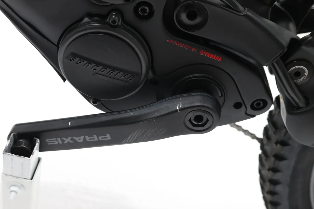 Le VTT électrique enduro conçu pour affronter les terrains les plus exigeants avec puissance et agilité. Il est équipé du moteur Yamaha SyncDrive Pro2, offrant un couple de 85 Nm pour une assistance fluide et dynamique. La batterie EnergyPak Smart de 800 Wh, intégrée au tube diagonal, assure une autonomie suffisante pour les longues sorties. Le vélo présente une configuration à roues mixtes. La suspension Maestro permet d’absorber efficacement les chocs. La transmission Shimano Deore SLX 12 vitesses assure des changements de vitesses précis, et les freins Shimano SLX offrent une puissance de freinage optimale. Avec un design robuste et une géométrie adaptée à l’enduro, le Reign E+ 2 est prêt à relever tous les défis du trail.