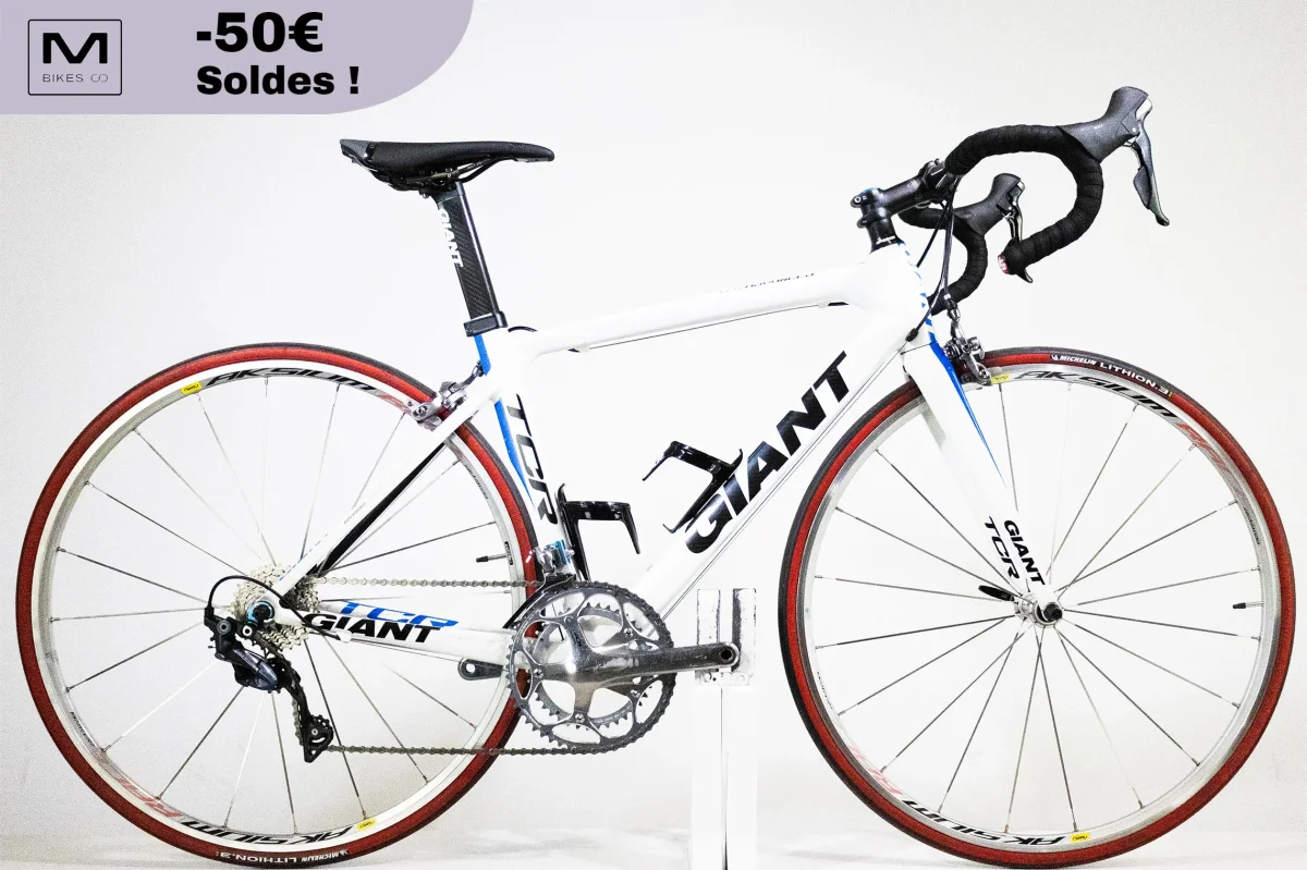 Ce GIANT TCR Advanced est un vĂ©lo de course en carbone lĂ©ger de seulement 7,9kg ! Il est Ă©quipĂ© d’une transmission fiable et fluide Shimano 105/Ultegra 2x10v assurant un passage des vitesses fluide et prĂ©cis. Ce vĂ©lo en superbe Ă©tat esthĂ©tique est disponible Ă un tarif très avantageux, avec plus de 40% de rĂ©duction !