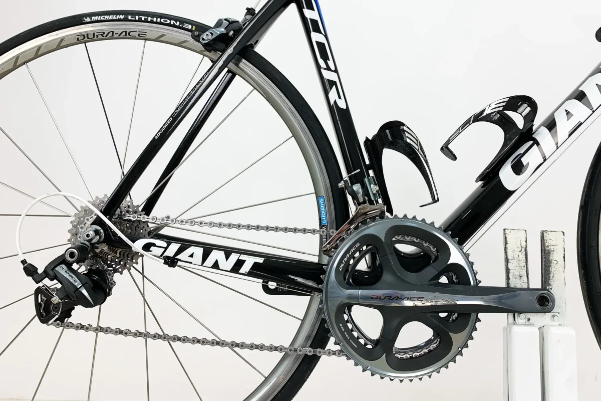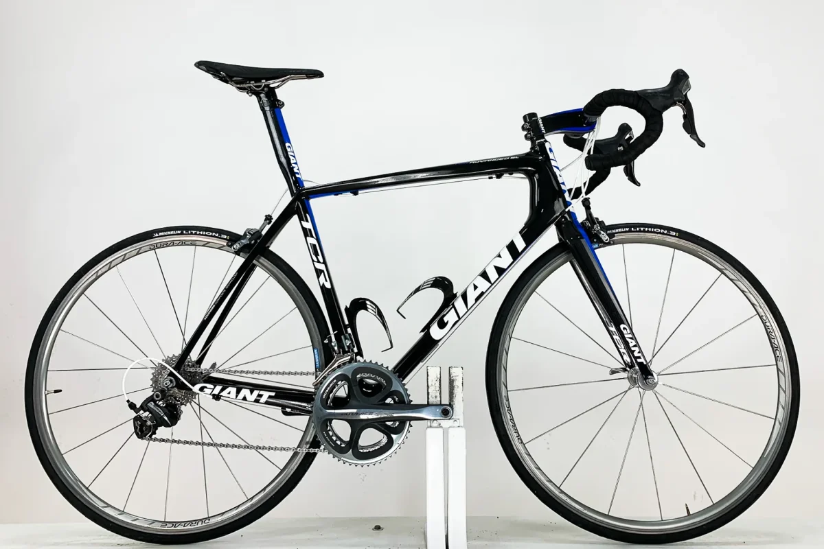 Ce GIANT TCR Advanced SL Team est un vĂ©lo de route hyper lĂ©ger en carbone. Ce modèle iconique de Giant est Ă©quipĂ© d’un groupe Shimano Dura-Ace très haut de gamme vous garantissant une fluiditĂ© de conduite incomparable ! En plus de ses composants haut de gamme, sa lĂ©gèretĂ© exceptionnelle vous permettra de dĂ©passer vos limites pendant vos sorties sur n’importe quelle route. Ce vĂ©lo est en superbe Ă©tat esthĂ©tique.