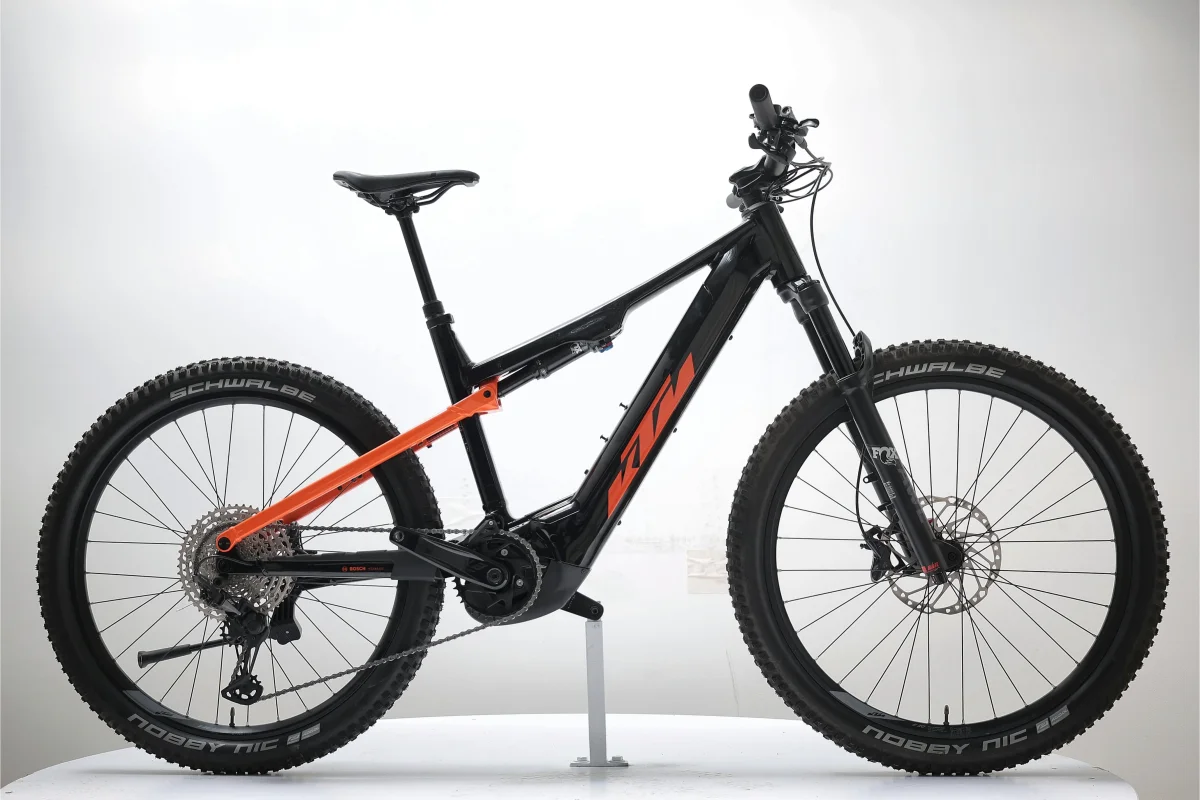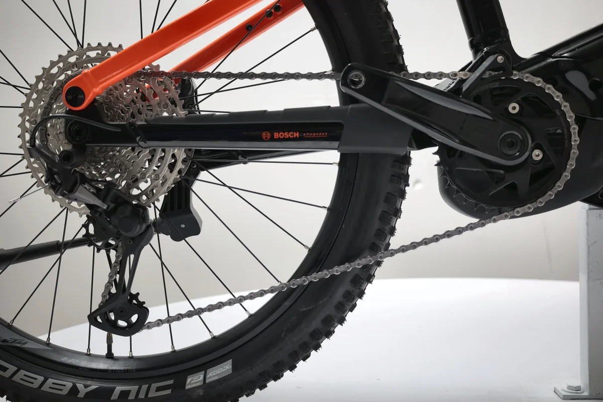 Le KTM Macina Lycan 771 est un VTT électrique tout-terrain pensé pour les randonnées engagées et les sentiers exigeants. Son cadre en aluminium 6061 avec architecture SLL-E et 140 mm de débattement avant + arrière assure à la fois robustesse et confort. Il est motorisé par le Bosch Performance CX Gen.4 85 Nm avec une batterie PowerTube 750 Wh Smart System intégrée, pour offrir une assistance forte dans les montées et de longues réserves pour les parcours soutenus. Équipé d’une transmission 1×12 Shimano XT/Deore, de freins hydrauliques puissants Shimano, de pneus larges Schwalbe Nobby Nic et d’une tige de selle télescopique, ce vélo conjugue agilité, grip et précision. Polyvalent, il se destine aussi bien aux amateurs de montée qu’aux passionnés de descentes techniques, toujours dans un compromis performance/ contrôle.