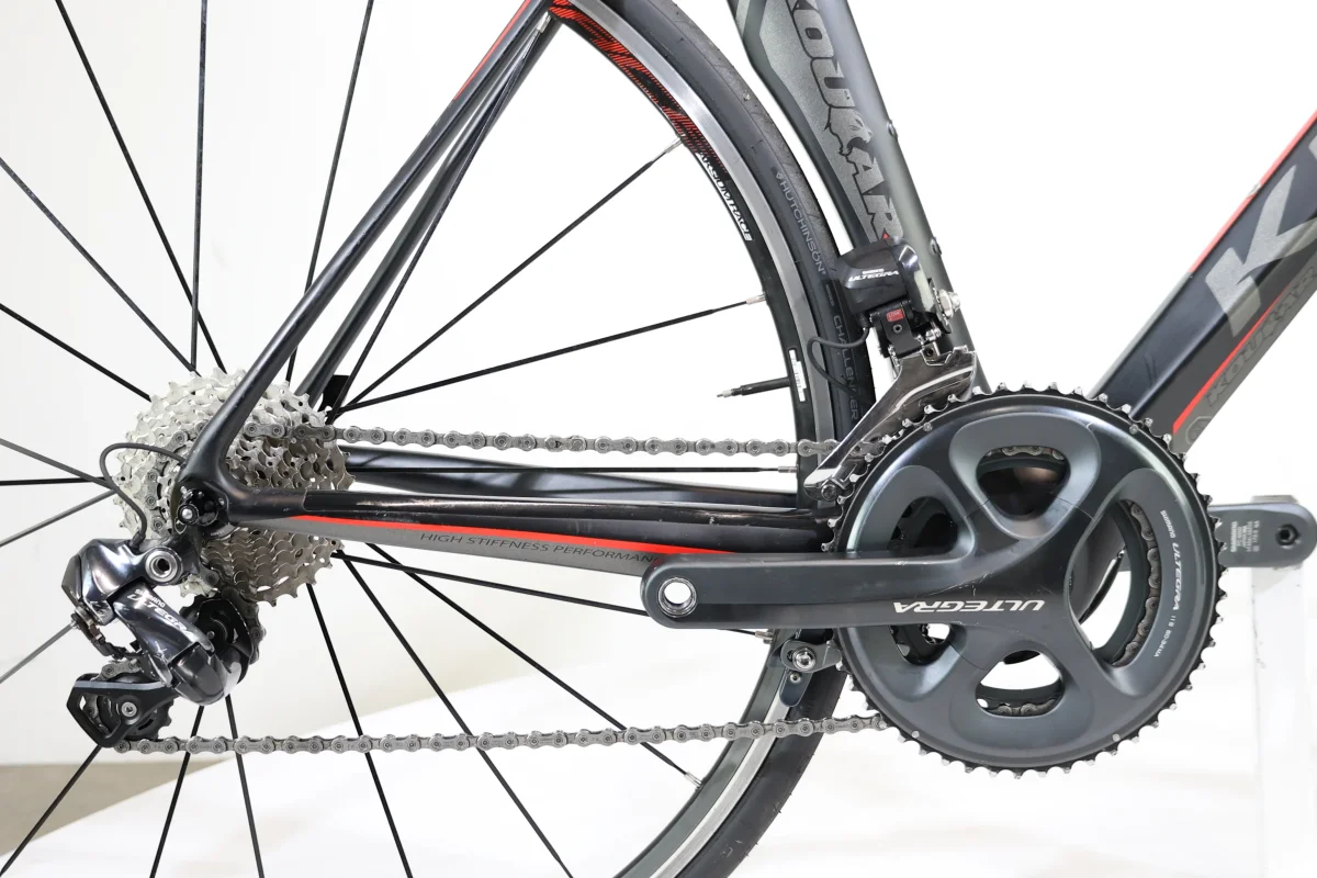 Ce KUOTA Kougard est un vélo de course haut de gamme ultra léger en carbone (cadre, fourche, tige de selle…). Il est équipé d’une transmission Shimano Ultegra Di2 avec passage des vitesses électrique, à la fois fluide, rapide et précis tout en offrant une large plage de vitesses.