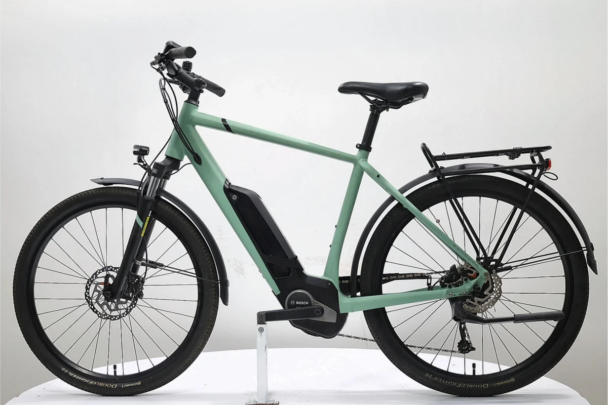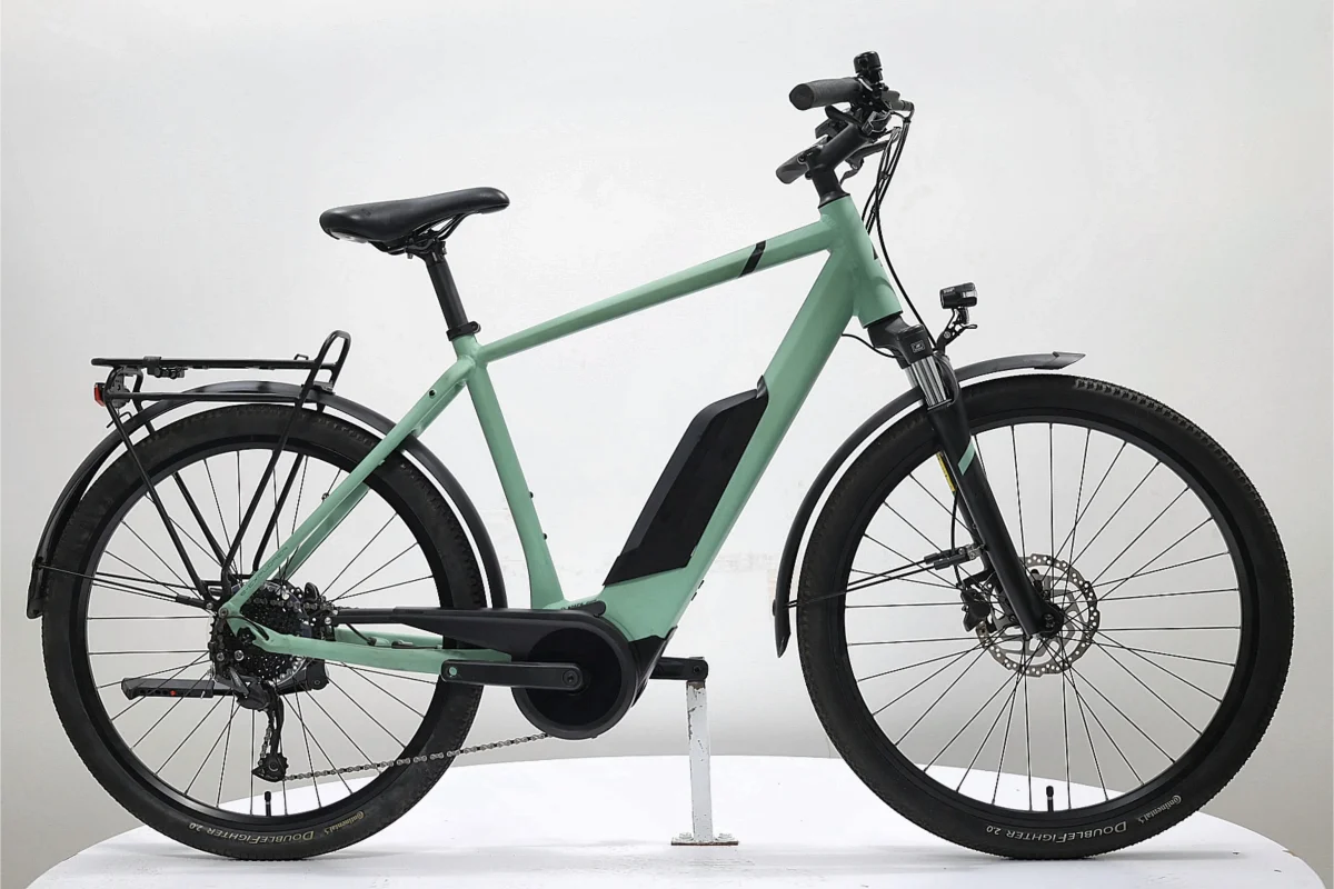 Un VTC électrique polyvalent, idéal pour les trajets urbains quotidiens et les escapades en pleine nature. Il est équipé d’un moteur central Bosch Active Line de 40 Nm, couplé à une batterie externe de 400 Wh, offrant une assistance fluide jusqu’à 25 km/h. Son cadre en aluminium semi-intégré assure une conduite stable, tandis que la fourche SR Suntour NEX E-25 de 63 mm de débattement apporte confort et absorption des chocs. Le groupe Shimano Alivio 9 vitesses assure des changements de vitesse précis, complété par des freins à disque hydrauliques Shimano MT200 pour un freinage efficace. Les roues de 27,5″ avec pneus Continental Double Fighter offrent une bonne adhérence sur divers terrains. Ce modèle allie performance, confort et fiabilité pour les cyclistes recherchant un compagnon fiable pour leurs déplacements quotidiens et leurs aventures le week-end.