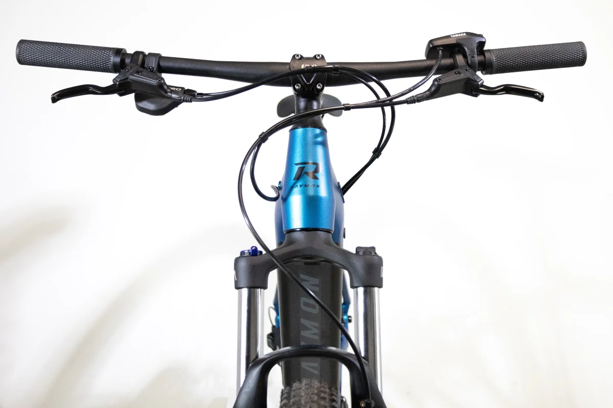Ce RAYMON HARDRAY E 5.0 est un VTT semi-rigide à assistance électrique récent de 2023. Il est équipé d’une motorisation Yamah puissante de 70Nm couplée à une batterie de 630Wh, pour une autonomie allant jusqu’à 150km ; parfait pour allonger vos sorties, élargir votre terrain de jeu ou améliorer vos performances lors de vos sorties cross-country. Il dispose d’une suspension SR Suntour en 120mm, ainsi que d’une transmission mono-plateau fiable et efficace Tektro E 1x9v.