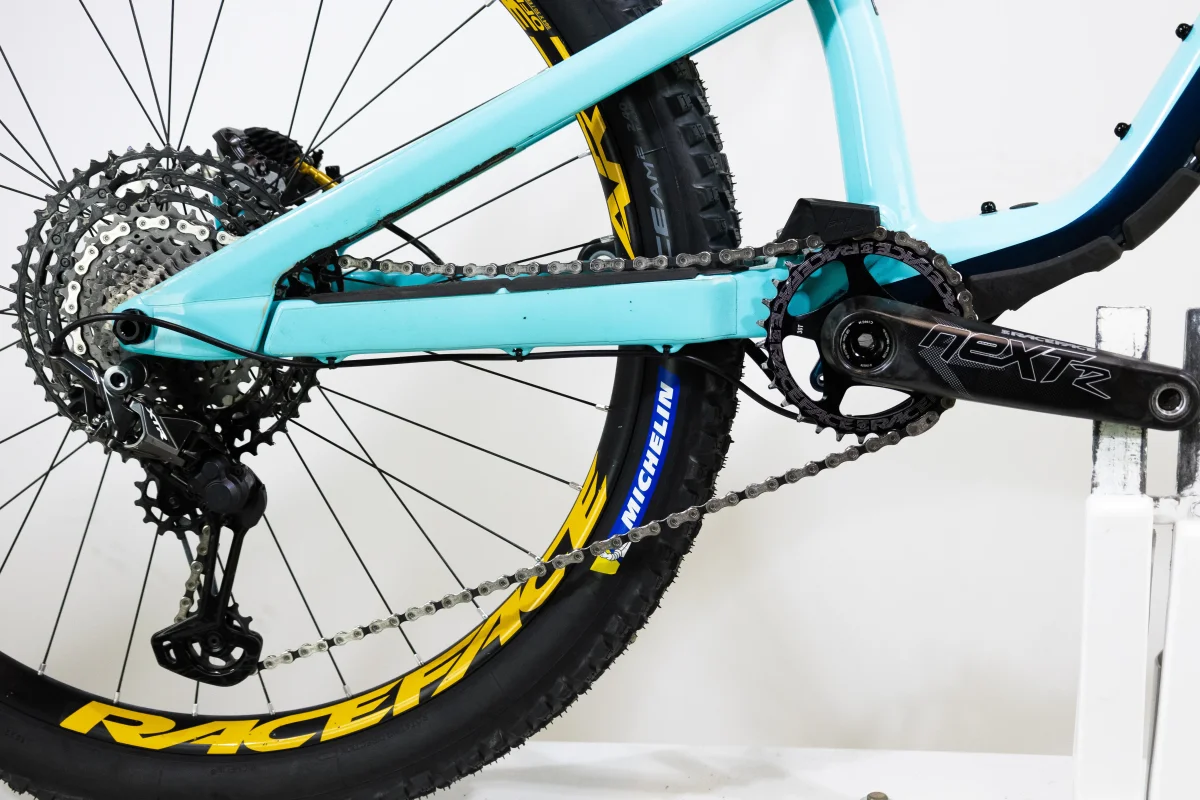 Ce ROCKY MOUNTAIN Altitude Carbon 90 est un VTT enduro en carbone ultra haut de gamme ! Il est équipé de suspensions Fox Kashima (160mm/150) ultra performantes, parfaitement adaptées à une pratique enduro de haut niveau. Sa transmission mono-plateau Shimano Deore XTR 1x12v vous offre une grande plage de vitesses et assure des transitions exceptionnellement fluides et précises. Son montage en 27,5″ et son poids plume (13kg) rend le vélo maniable et joueur en descente. Profitez de ce VTT de champion remis à neuf à un prix défiant toute concurrence !