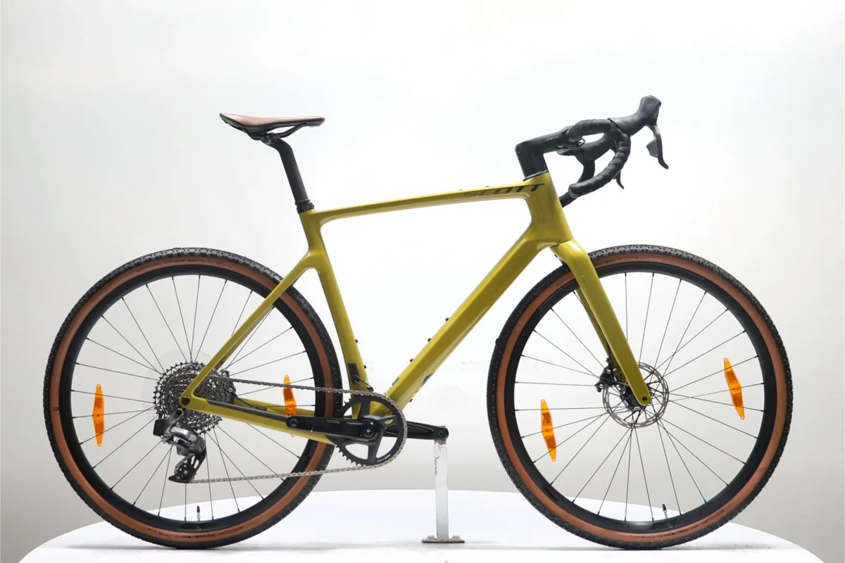 Le Scott Addict Gravel 20 est un vélo de gravel en carbone haut de gamme, conçu pour explorer tous types de terrains avec performance et confort. Son cadre léger en carbone HMF, associé à la transmission électronique sans fil SRAM Rival eTap AXS 1×12, offre précision et réactivité. Monté avec des roues Syncros RP2.0 Disc […]