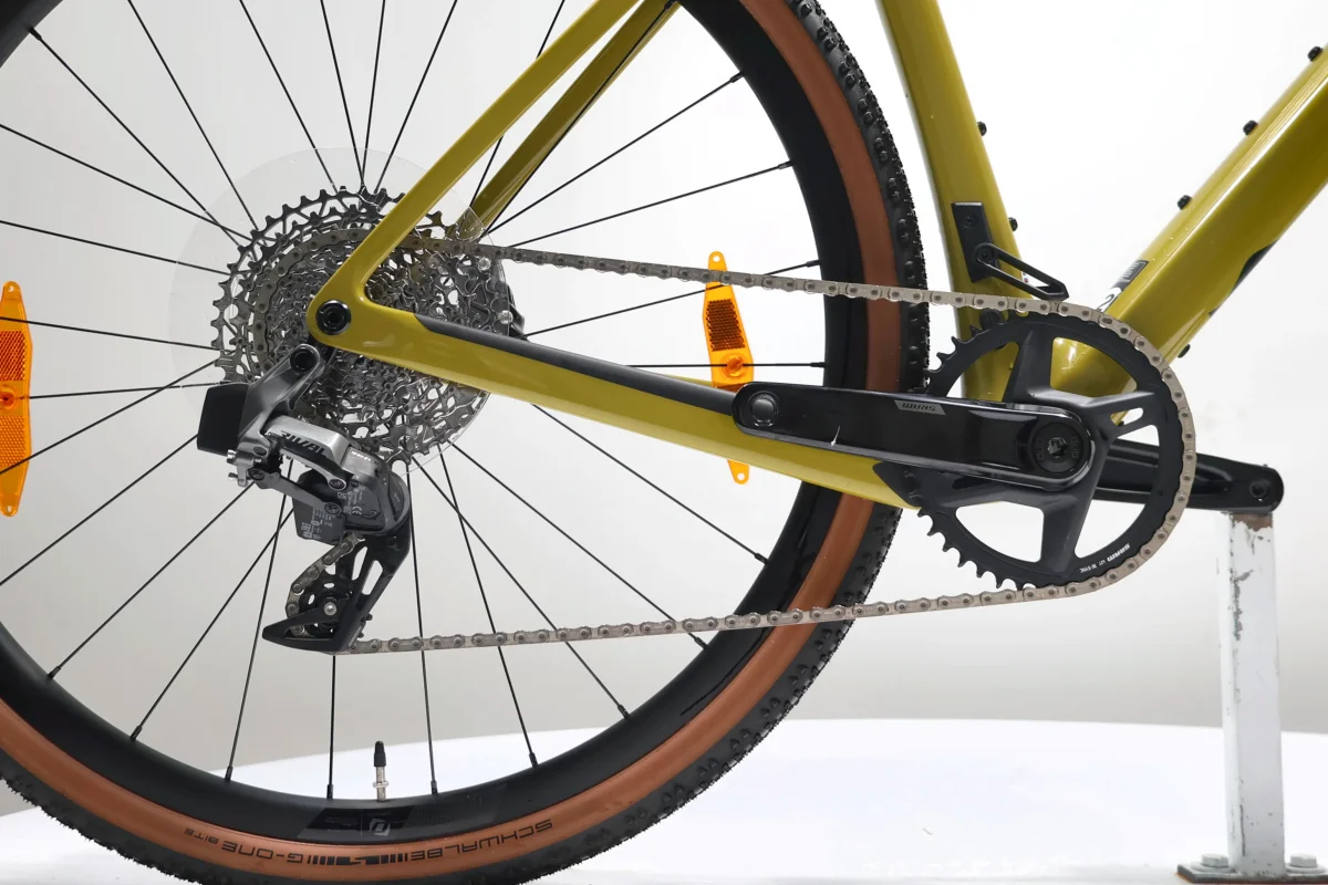 Le Scott Addict Gravel 20 est un vélo de gravel en carbone haut de gamme, conçu pour explorer tous types de terrains avec performance et confort. Son cadre léger en carbone HMF, associé à la transmission électronique sans fil SRAM Rival eTap AXS 1×12, offre précision et réactivité. Monté avec des roues Syncros RP2.0 Disc et des pneus larges Schwalbe G-One 700x45C, il assure stabilité et adhérence sur chemins et routes. Polyvalent, moderne et taillé pour l’aventure, c’est le compagnon idéal pour les longues sorties hors des sentiers battus.