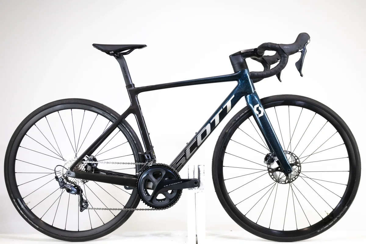 Ce SCOTT Addict RC 40 est un vĂ©lo de route/course en carbone rĂ©cent de 2022. Ce modèle haut de gamme est Ă©quipĂ© d’une transmission Shimano Ultegra 2x11v offrant une grande plage de vitesses et assurant des changements de vitesses fluide et prĂ©cis. Ses puissants freins Ă disque Shimano Ultegra vous assurent des descentes rapides. Ce vĂ©lo est dans un Ă©tat esthĂ©tique proche de la perfection.