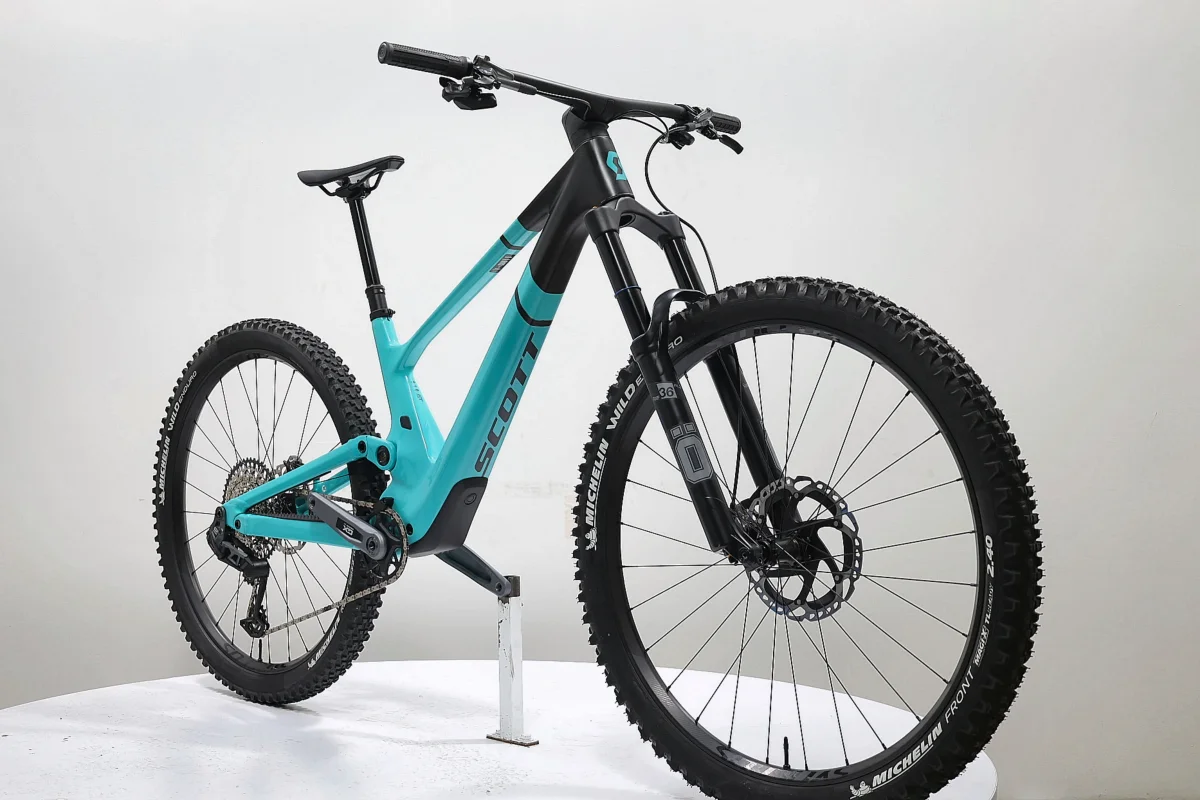 Ce Scott incarne le trail moderne hautes performances avec un cadre avant en carbone HMF ultra rigide associé à un triangle arrière en aluminium 6061, intégrant une suspension Horst-link dissimulée pour une esthétique épurée et une protection optimale. Il propose 160 mm de débattement avant via une fourche Öhlins avec réglages haute et basse vitesse, et 150 mm à l’arrière grâce à un amortisseur FOX avec 3 modes (Climb, Traction Control, Descend) activables via le système TracLoc. Le groupe électronique sans fil SRAM GX Eagle AXS 12 vitesses garantit des changements précis, tandis que les freins Shimano XTR apportent un freinage puissant et contrôlé. Monté sur des roues Syncros Revelstoke 2.0 tubeless-ready équipées de pneus Michelin, ce Genius ST 910 TR all-mountain ambitieux vise les descentes engagées tout en restant dynamique en montée.