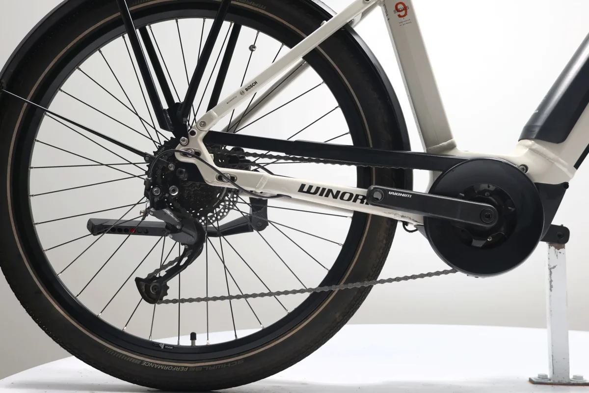 Le Winora Sinus 9 de 2021 est un vélo électrique polyvalent pensé pour un usage quotidien et longue distance, avec un minimum d’entretien. Équipé du moteur Bosch Performance Line (65 Nm) et d’une batterie de 625 Wh, il offre une assistance fluide et une autonomie généreuse. Sa transmission Shimano Alivio 9 vitesses, ses freins à disque hydrauliques et ses composants fiables garantissent confort, sécurité et performance, que ce soit en ville ou en sortie plus sportive. Parfait pour les trajets maison-travail comme pour les escapades hors des sentiers battus.